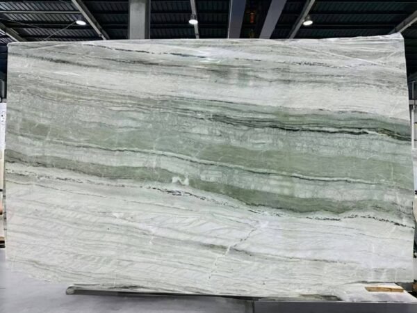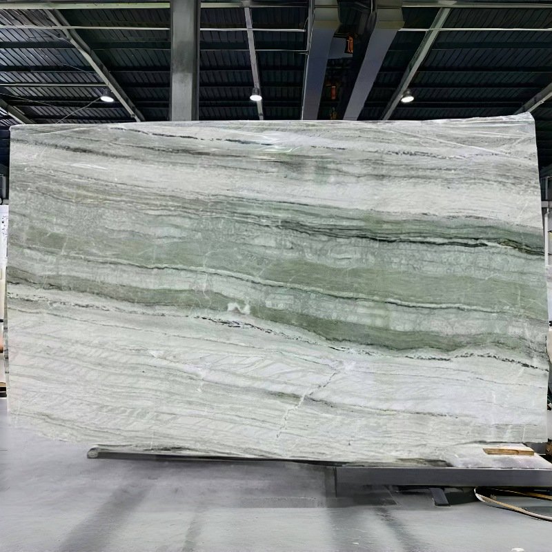 It is used in cabinet countertops, dining tables, bathrooms and other areas. Its green tone is combined with light and shadow to bring an immersive experience like a jungle secret. Large-area paving can create a bold and high-end visual impact, and it is matched with logs and white furniture to highlight the natural relaxation.